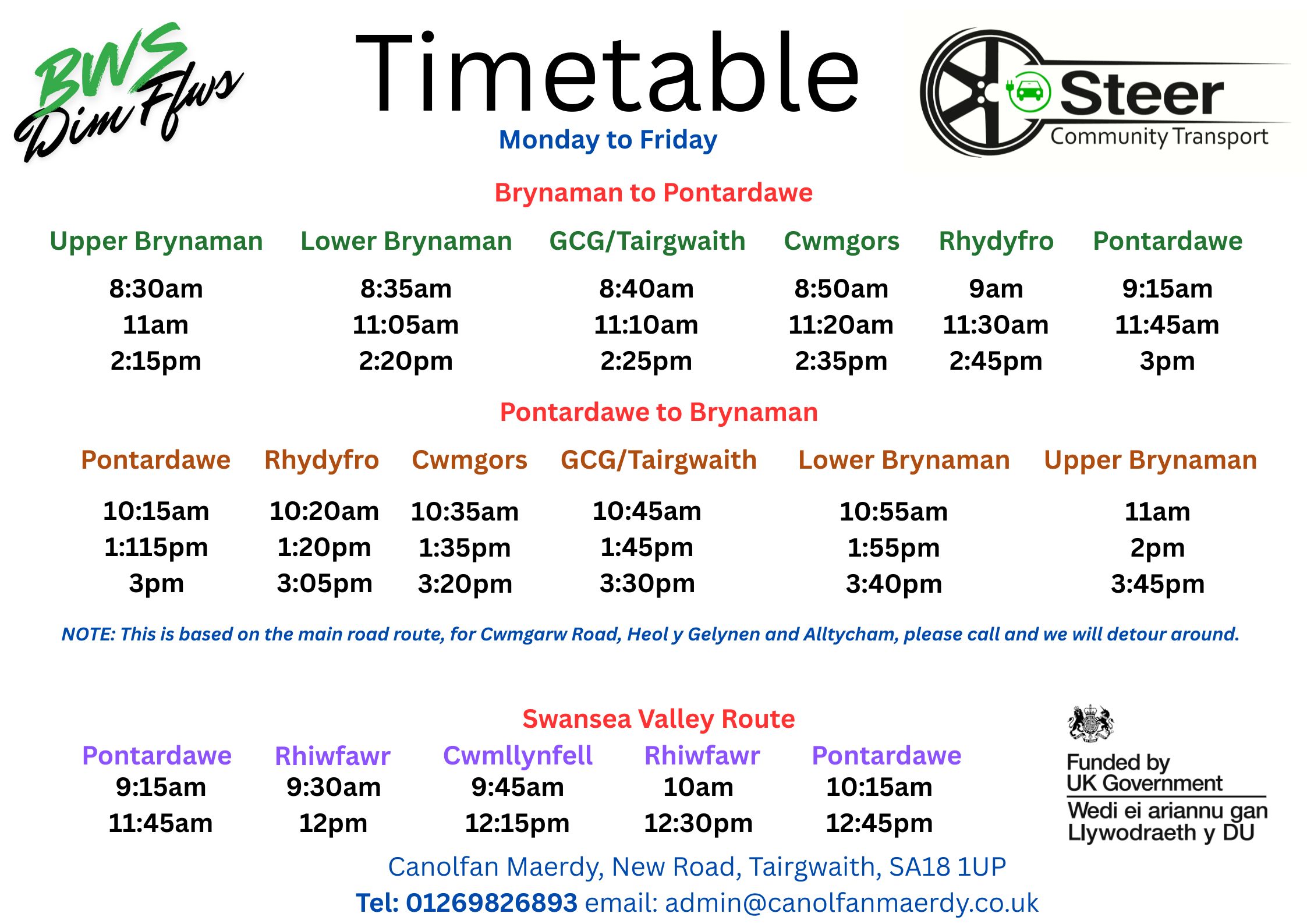 BDF1 - Pontardawe - Upper Brynaman - New timetable - Please click here